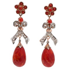 Orecchini RETRO con rubino e diamanti taglio rosa in oro e argento 18 carati