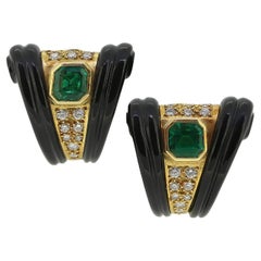 Orecchini a clip d'epoca firmati Carolee, in vetro verde smeraldo e tono oro