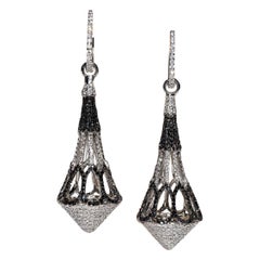 Orecchini vintage floreali con diamanti bianchi e neri in oro bianco 18k di Stefan Hafner