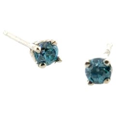 Orecchino singolo con diamante blu Fancy Mined .15ct in oro bianco 14K a 4 punte Presenta un Diamante Brilliante Rotondo da 0,15 ct, autentico e naturale, estratto in miniatura. ...