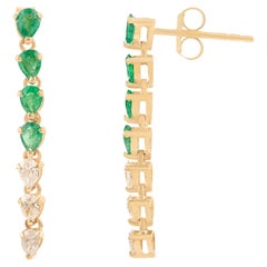 Orecchini a goccia in oro giallo 18K con smeraldo da 1,6 carati e diamante da 11 carati