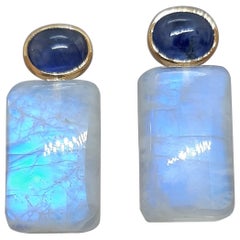 Questi eleganti orecchini pendenti di pietra di luna e labradorite sono stati realizzati a mano in i nostri laboratori. Sono caratterizzati da pietre di luna tagliate a mano a forma...