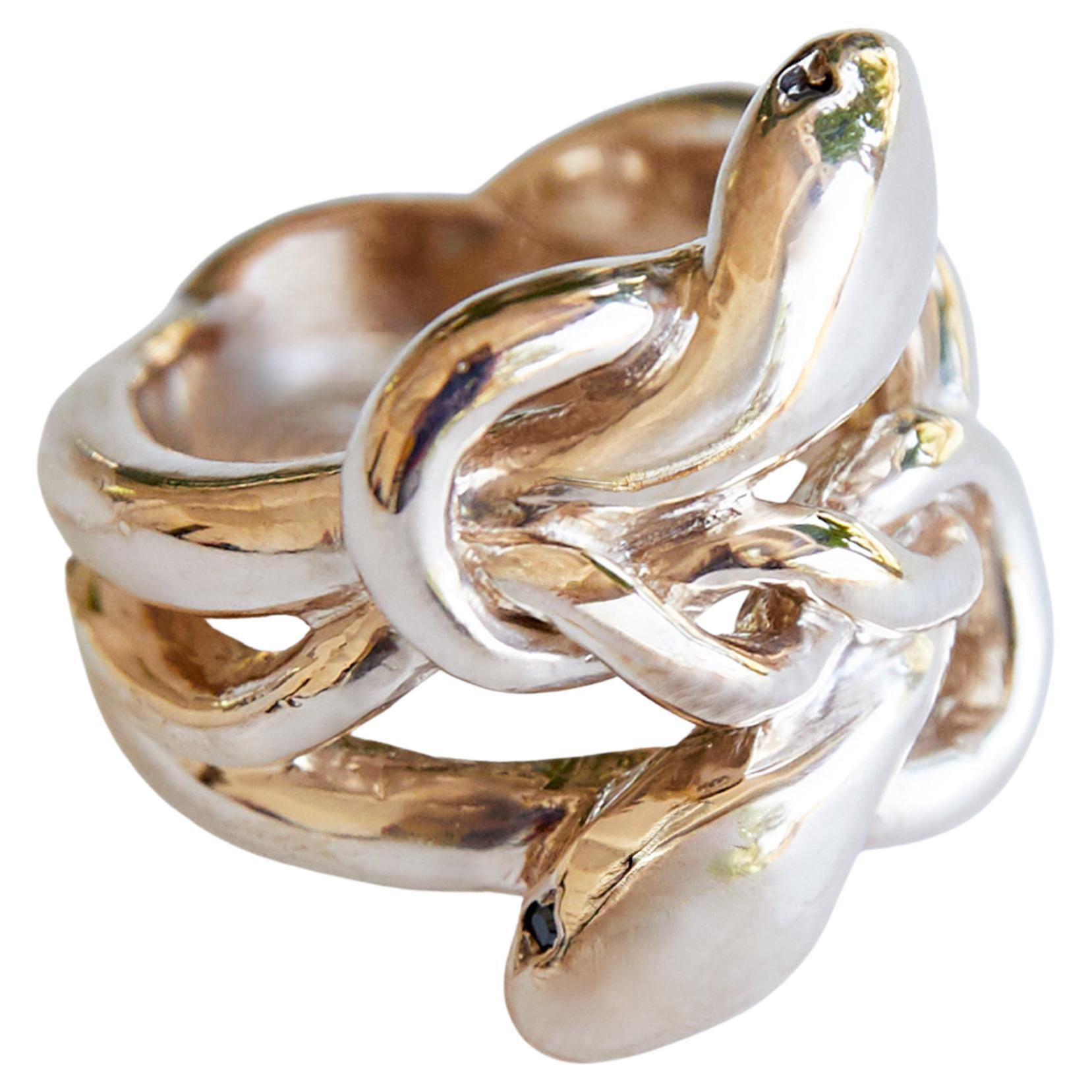 Anello con serpente a due teste e due coppie di diamanti neri come occhi, realizzato in argento placcato oro 14K. Ispirato alla gioielleria vittoriana e al simbolismo dell'ouroboros ...