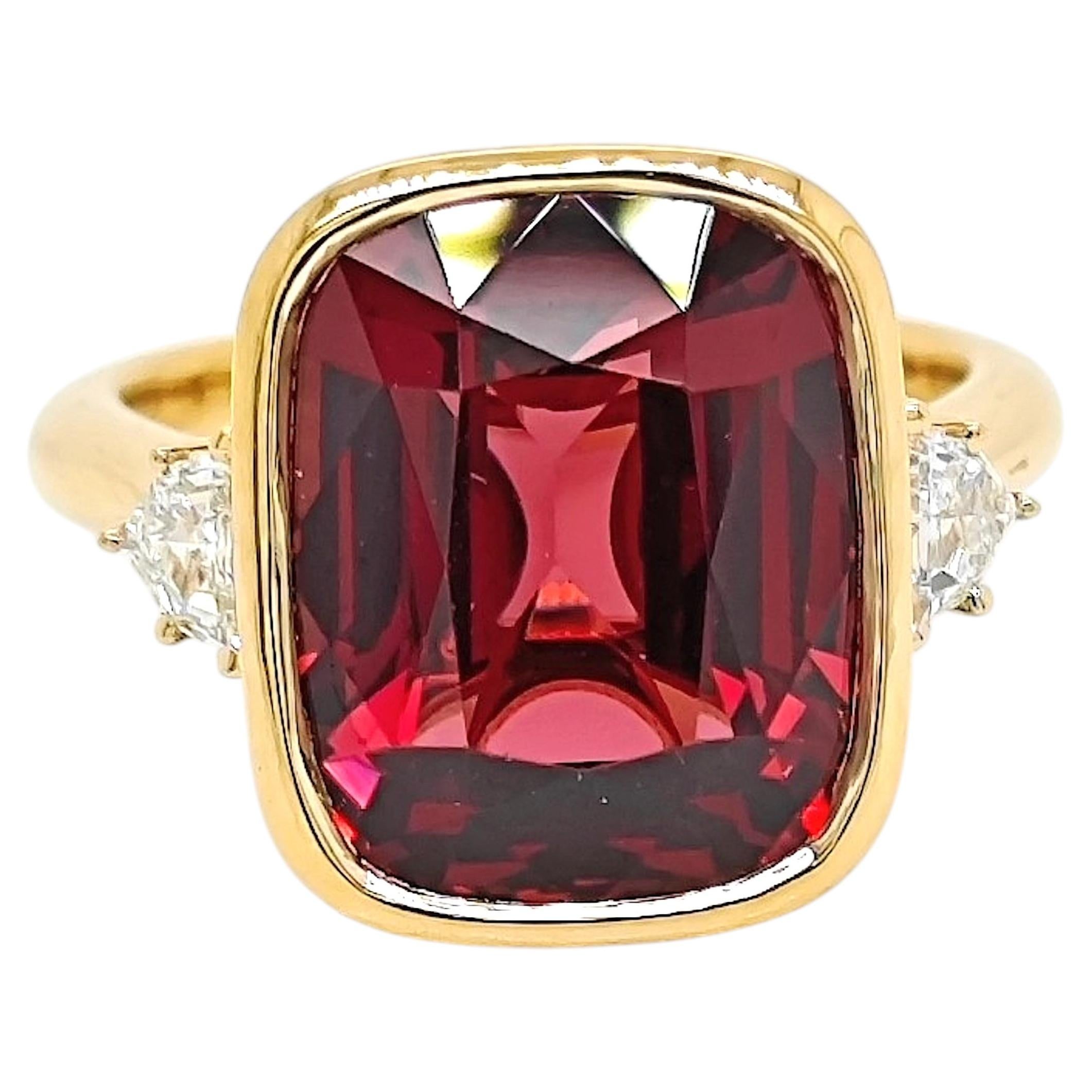 La superficie inferiore è circondata da una fascia di oro prezioso battuto. Stringe un granato rosso sangue che brilla in tutto il suo lusso cremisi. La superficie dell'anello sottos...