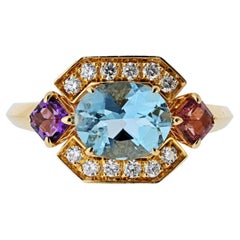 Acquamarina, Peridoto, Tormalina, Oro 18k