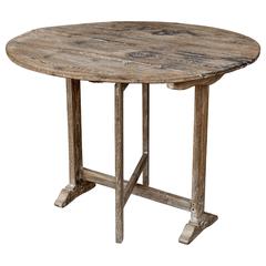 Tavolo da degustazione francese del XIX secolo con patina grigio-marrone e resti di vernice bianca. Il piano, che può essere posizionato in verticale per essere riposto, e aperto in ...