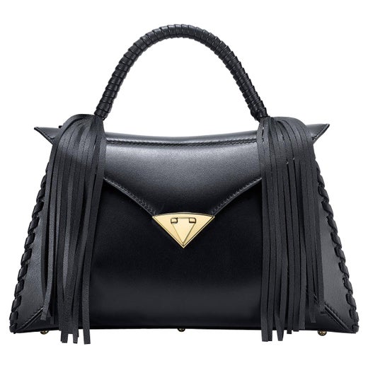 Fin dall'inizio, Ellis ha puntato su forme senza tempo rese in materiali sontuosi: lucertola giallo canarino, alligatore rosso rossetto, raso rosa bubblegum, pelle di vitello blu cobalto. Una delle sue prime creazioni è stata una tote con manico in alto, fresca e senza fronzoli, tranne che per la chiusura dorata e i piedini scolpiti in modo da assomigliare a pigne (il suo unico motivo distintivo, scelto per la sua antica associazione con il terzo occhio). Continua a riproporre questo modello stagione dopo stagione, rifinito con frange di pelle o incorniciato con bordi cuciti a frusta.