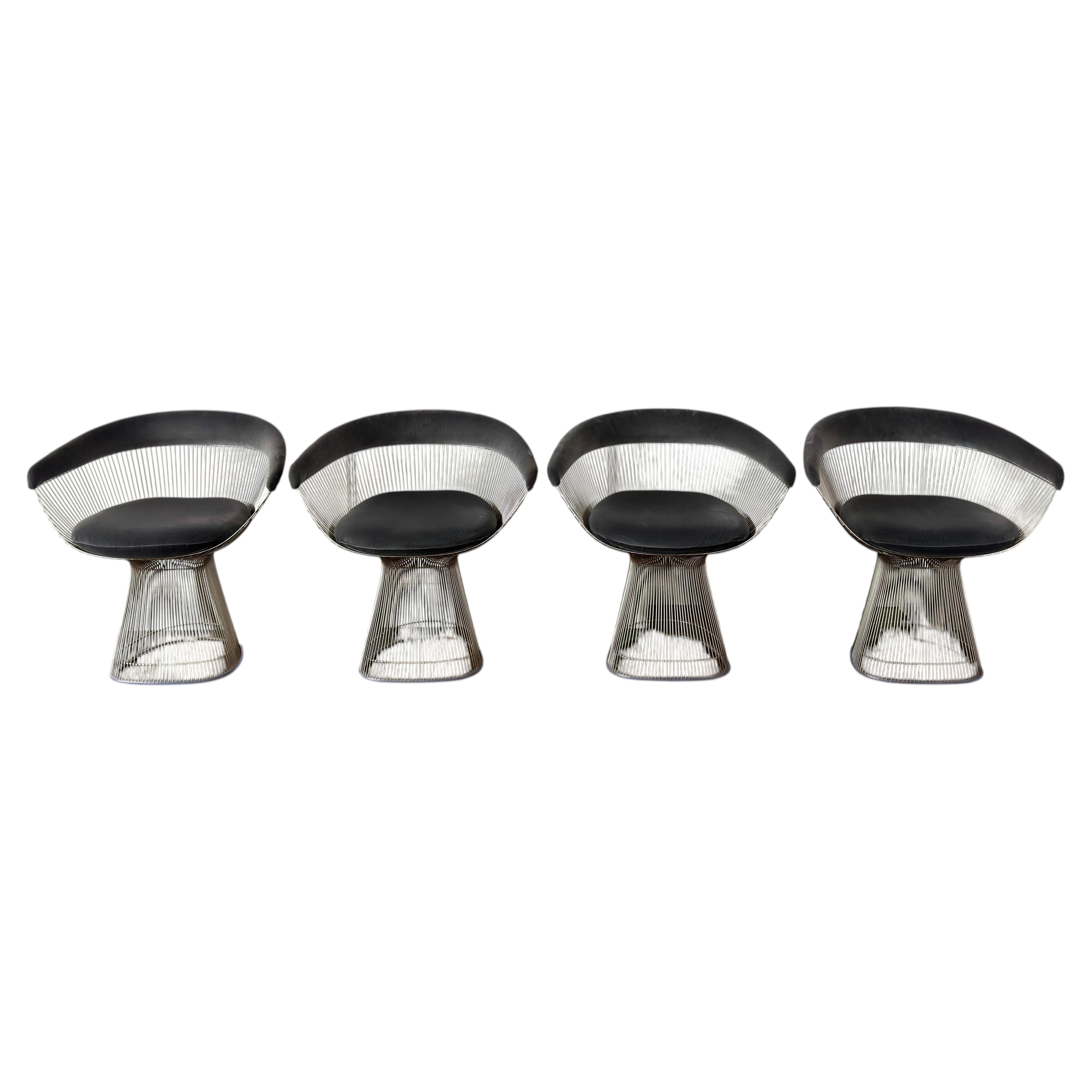 Set di quattro poltrone Platner di Warren Platner per Knoll, acciaio, velluto, anni '60