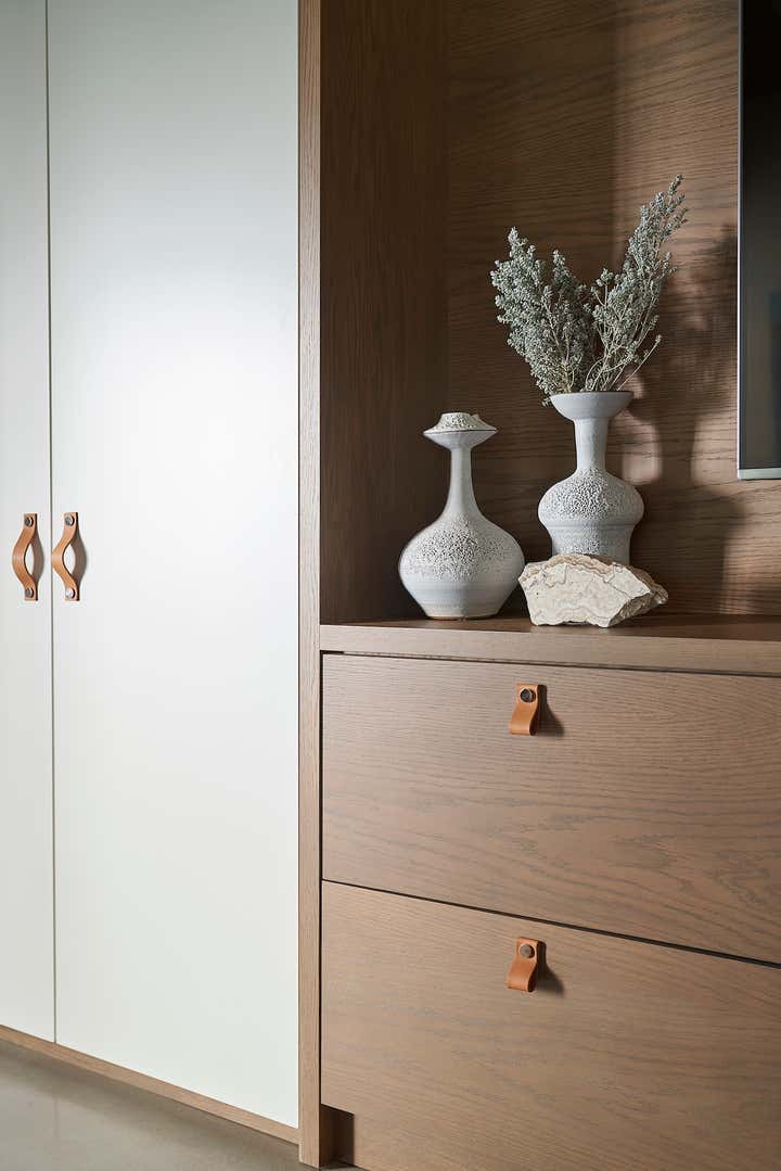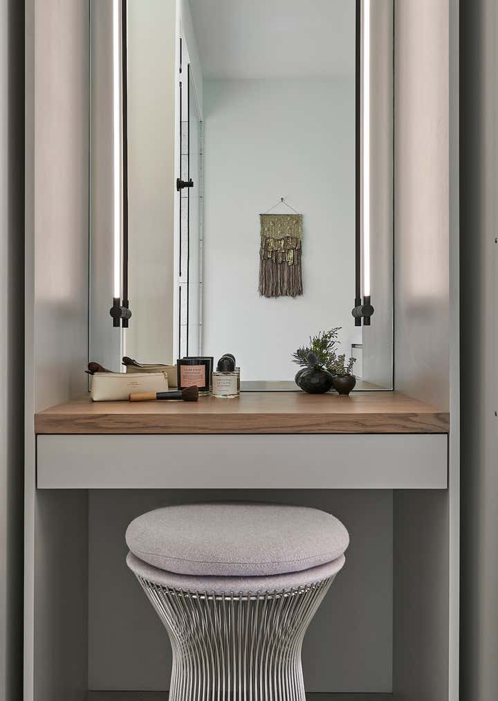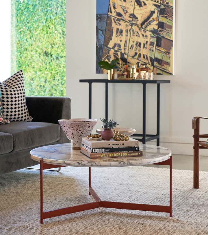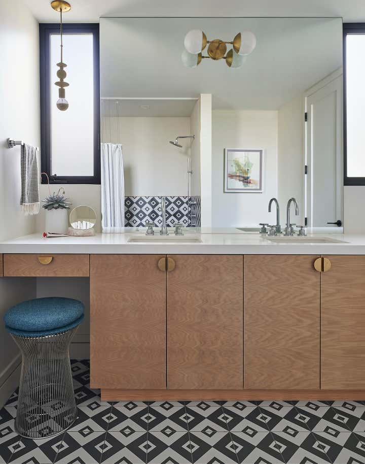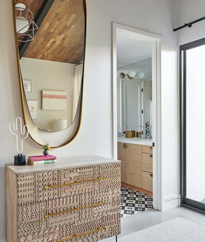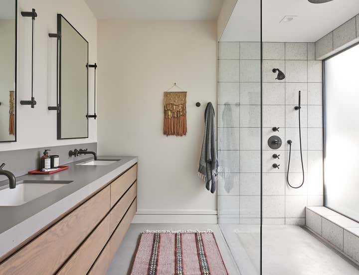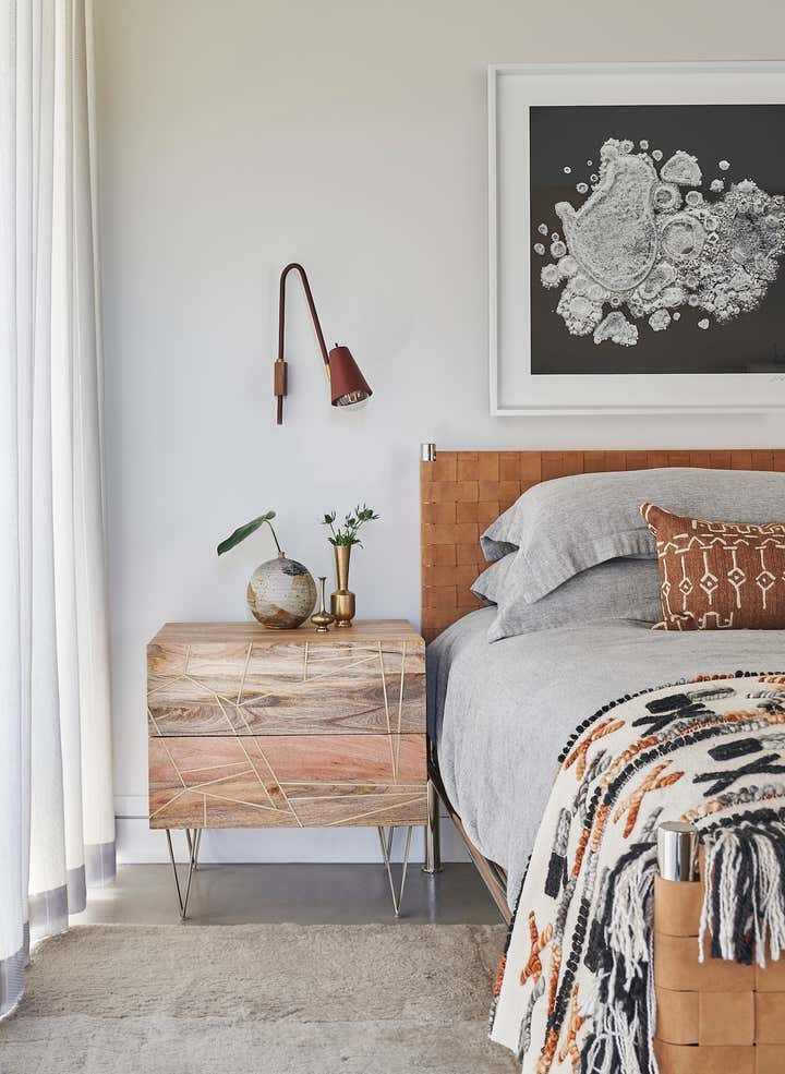 Merging modernism and California cool was the intent behind this second home to longtime Bishop Studio clients looking for a desert retreat. With rich wood planks covering the ceiling, a soft white palette was introduced for levity in the main living spaces, while vibrant hues offered playful accents throughout.