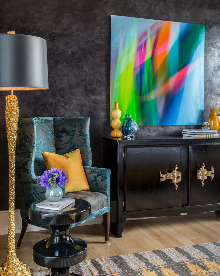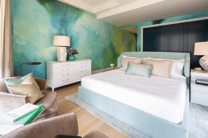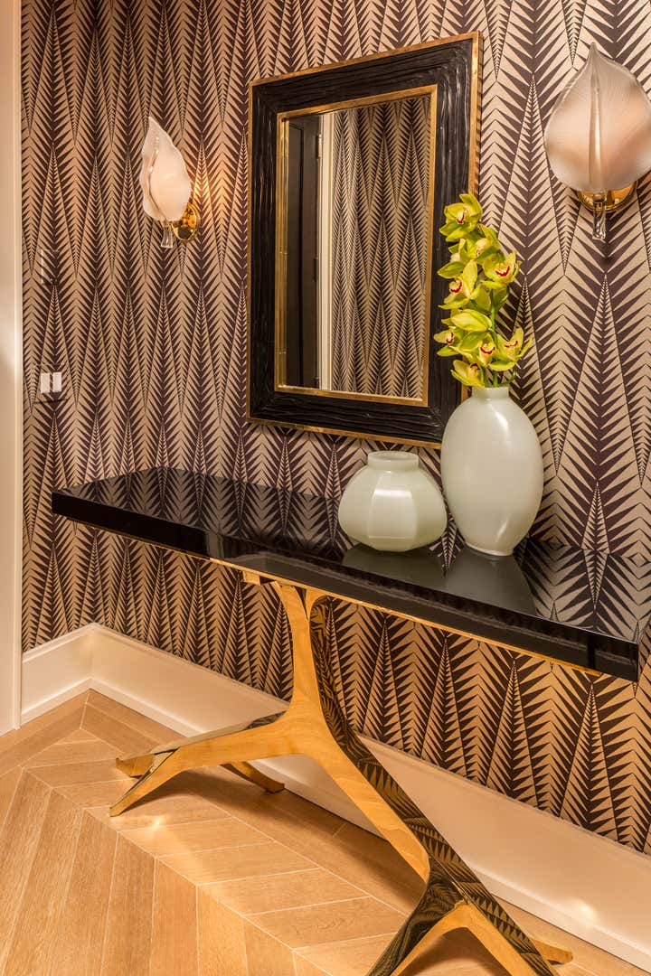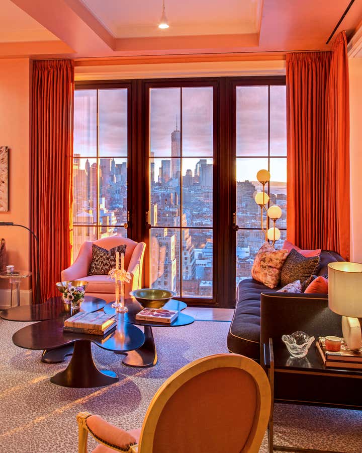 For the 2013 Designer Visions Show House, Jamie Drake envisioned a very glamorous and urbane client, inventing her as the granddaughter of Josephine Baker. “The minute I saw Walker Tower - a marvelous 1929 Art Deco skyscraper - I was transported back to a time that was exuberant and forward-thinking, when designers began to use straight lines, geometric patterns, and luxurious materials.. Josephine Baker embodied the era, breaking down barriers in a provocative and glitzy manner. The pink living and dining areas are a warm coral with a sophisticated, feminine point of view that connects to the cityscape. With an innate knack for thinking outside the box in space planning, Drake placed the dining table not where most people would - by the kitchen - but in front of the fireplace. In the master bedroom Drake floated the bed to take advantage of the views, and evoke a dreamy experience.