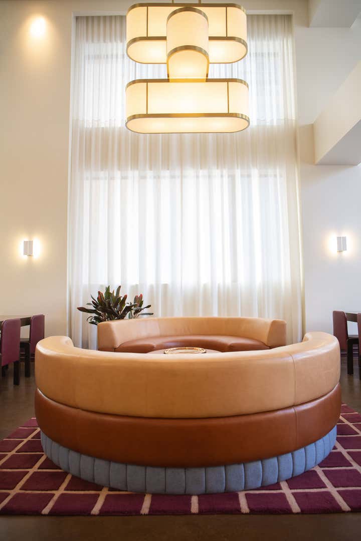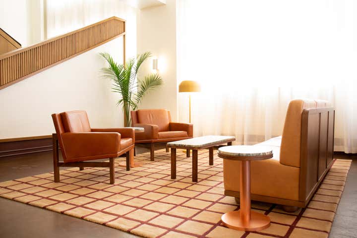 At the center of vibrant downtown Memphis, Hu is inspired by the free-spirited iconic Americana of the city itself and the building's rich architectural history as the Tennessee Trust Bank Building. Rooted in the past but looking towards the future, the design of Hu is equally suited for early morning coffee meetings as it is for boisterous game-day brunches, cocktails with live music, intimate dinners for two, or hazy nightcaps with the bartender. Home Studios has created an eclectic, energetic and inviting environment throughout the Hu Hotel, with each area functioning as its own unique and immersive experience. The comfortable, warm hotel lobby welcomes both hotel guests and city residents alike to relax and have a cup of coffee or an afternoon snack. The space is adorned with varied natural wood tones and textures, playful geometries, custom leather and woven seating, large maple library tables, marble accents, and custom lighting throughout. The restaurant at the Hu is designed as a diner from the Memphis golden era of Sun and Stax Records both elevated and reinvented: copper and zinc make the space shine, while tile wall details, wood floors, and oversized leather and maple banquettes soften the space. On the rooftop, the design draws inspiration from and celebrates the Hu's extraordinary, one-of-a-kind city views. The design of the hotel's guest rooms is light, airy and elegant, taking inspiration from the structure and materiality of men's suiting contrasted with soft, feminine floral peach tones and copper accents.
