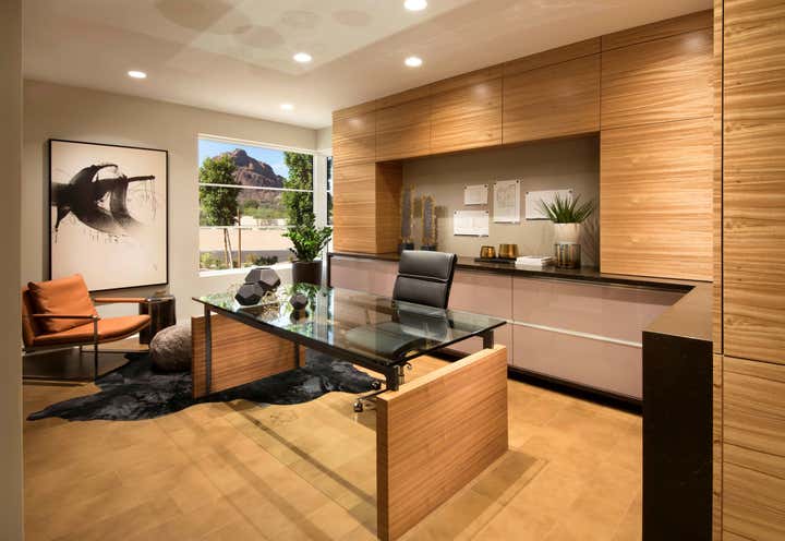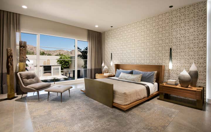 Scale, patterns and textures create a sophisticated design for this desert residence. Highlighted by carefully selected wall treatments, this family residence exudes a natural, earthy warmth that celebrates sophisticated intimacy. Designed with a busy family in mind, each space carefully balances function with aesthetics. Playful colors that reflect the vibrant personalities of the residents come through in unexpected places to add unique focal points. The residence exudes a vibe of a joyful vibrance at play.