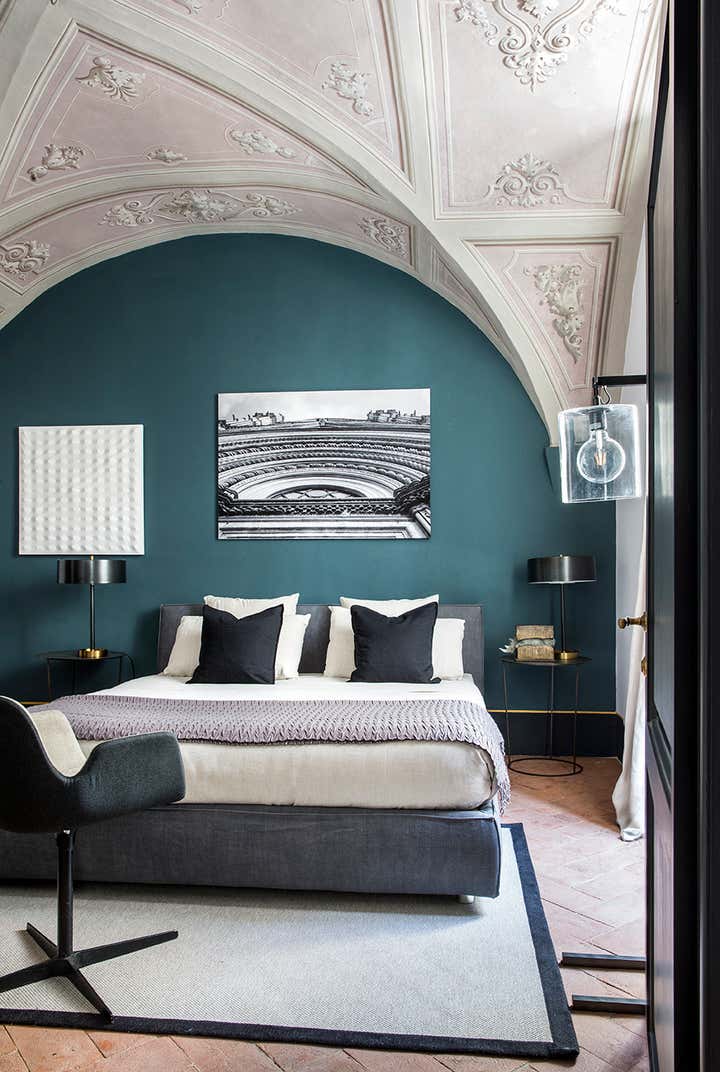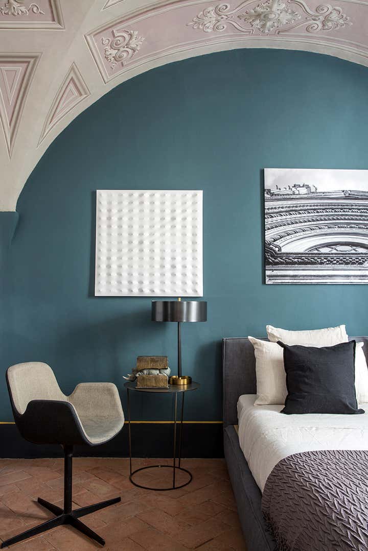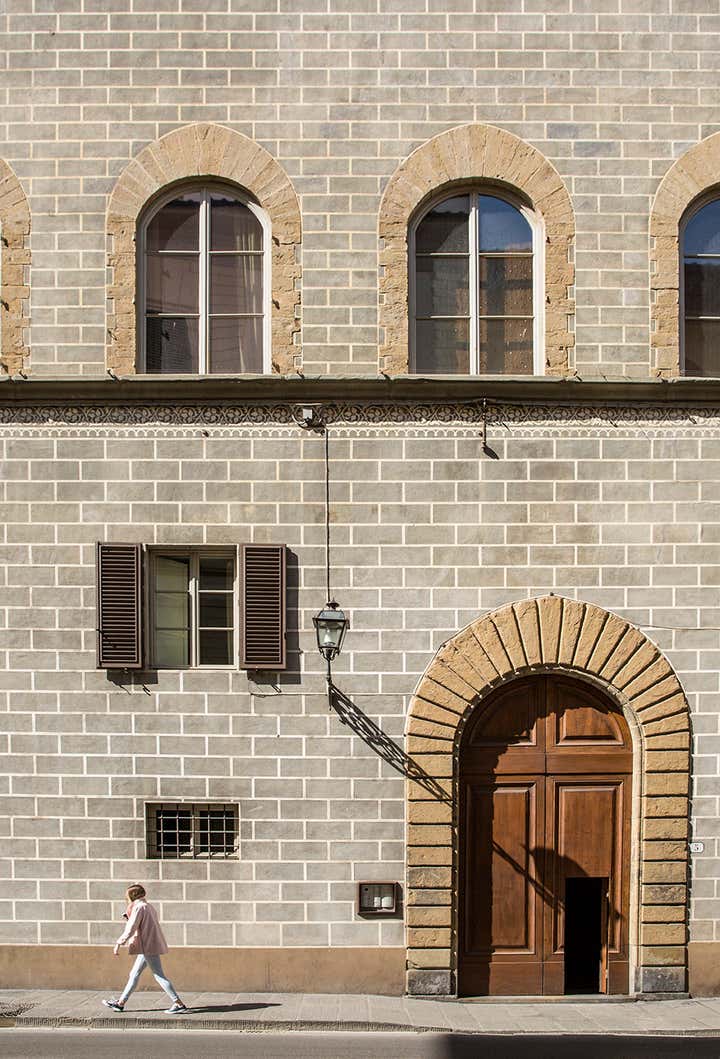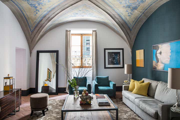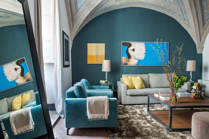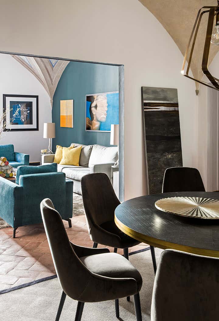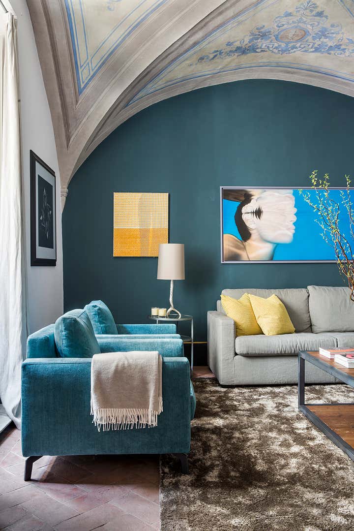 L’abitazione s’inserisce in un contesto rinascimentale nel cuore di Firenze, al primo piano di un palazzo in perfetto stato di conservazione costruito sul perimetro loggiato della corte interna, opera del Brunelleschi. Il progetto di interior, ha visto un intervento di attento recupero di alcuni elementi esistenti, quali ad esempio i pavimenti e le volte affrescate, in abbinata a soluzioni coloristiche, di materiali e d'arredo inaspettate. Colori pieni e forti, dettagli costruttivi ricercati e materiali d'eccezione sono il filo conduttore della narrativa di questa meravigliosa casa in cui, volutamente, sono stati creati ambienti armonici ed al tempo stesso in contrasto tra loro. Ne sono un esempio la zona living e la camera da letto padronale, ambienti sviluppati sulla dominante del blu Amsterdam alle pareti, risolti in modi completamente differenti: il primo "osa" con il suo tripudio di colori e abbinamenti arditi, la seconda si affida al tepore di colori e materiali neutri richiamando l'intimità segreta di un'alcova.