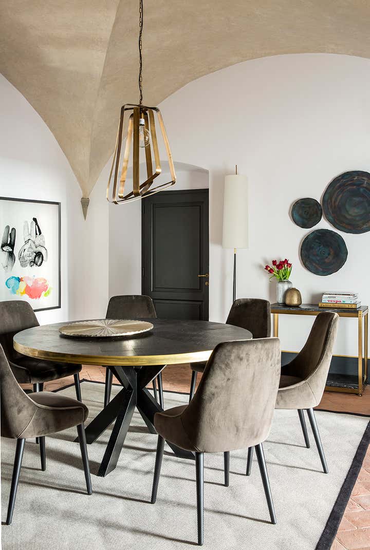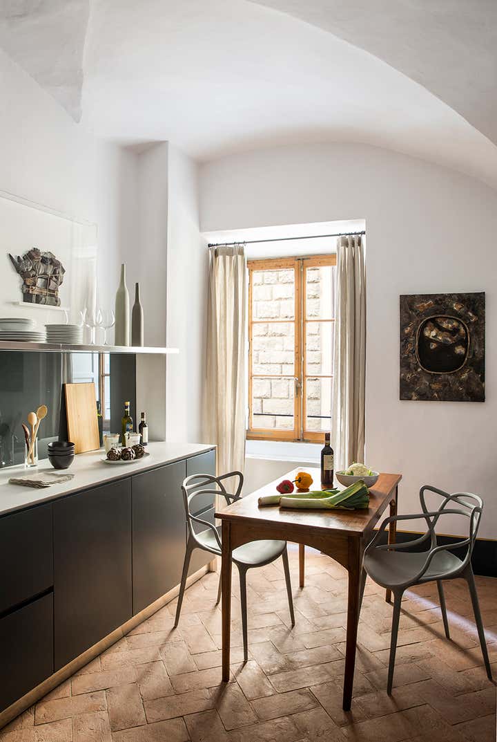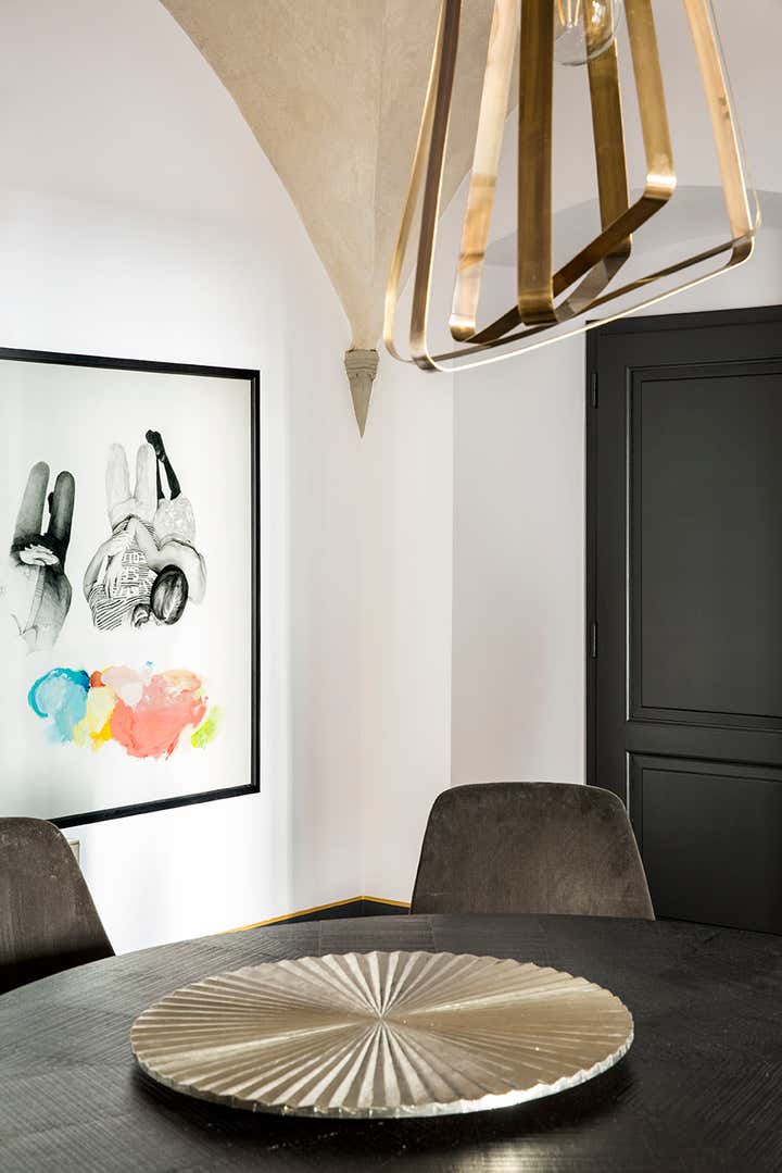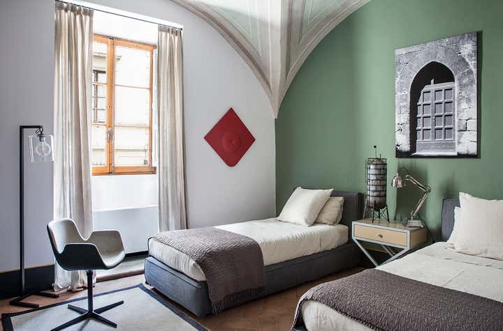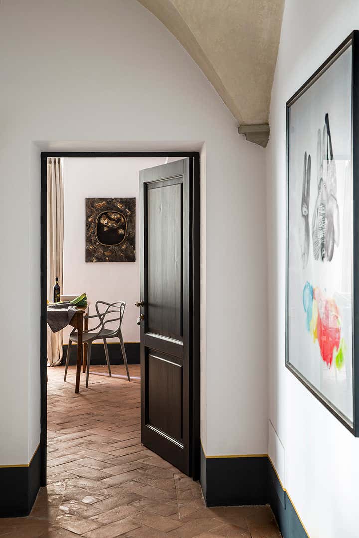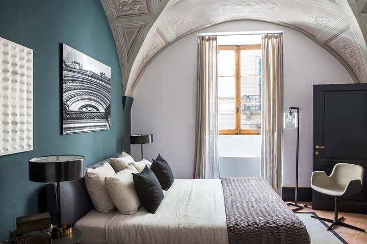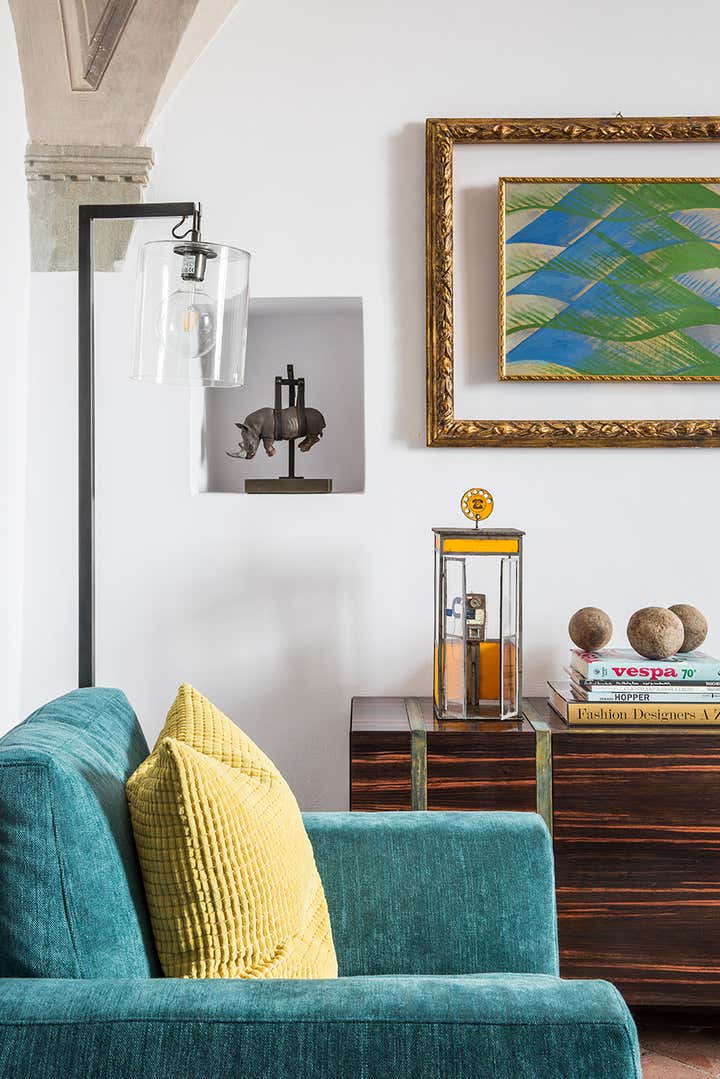 L’abitazione s’inserisce in un contesto rinascimentale nel cuore di Firenze, al primo piano di un palazzo in perfetto stato di conservazione costruito sul perimetro loggiato della corte interna, opera del Brunelleschi. Il progetto di interior, ha visto un intervento di attento recupero di alcuni elementi esistenti, quali ad esempio i pavimenti e le volte affrescate, in abbinata a soluzioni coloristiche, di materiali e d'arredo inaspettate. Colori pieni e forti, dettagli costruttivi ricercati e materiali d'eccezione sono il filo conduttore della narrativa di questa meravigliosa casa in cui, volutamente, sono stati creati ambienti armonici ed al tempo stesso in contrasto tra loro. Ne sono un esempio la zona living e la camera da letto padronale, ambienti sviluppati sulla dominante del blu Amsterdam alle pareti, risolti in modi completamente differenti: il primo "osa" con il suo tripudio di colori e abbinamenti arditi, la seconda si affida al tepore di colori e materiali neutri richiamando l'intimità segreta di un'alcova.