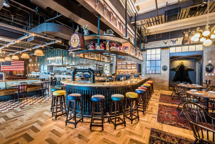 St. Anselm is a Stephen Starr restaurant in Washington DC. The design was a collaboration between Brooklyn restaurateur Joe Carroll and Stokes Architecture. The space is conceptually inspired by classic steakhouse aesthetics with unexpected and fun takes on those stereotypes.