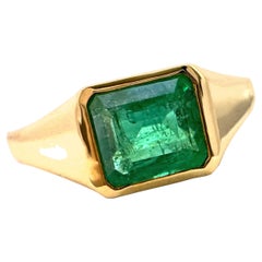 Unisex type Signet Ring in solid 18K Yellow Gold with plain shoulders and bezel set Blood - stone, color is dark Green color with red dots, measures ca. 10 mm x 7.5 mm x 2.75 mm deep...