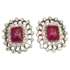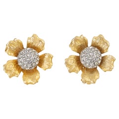 Vintage gold tone faux pearls rhinestones designer clip on earrings
