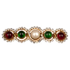 This stunning French Jewelry designer, Henry Perichon (aka Henry), gilt bronze brooch has an undeniable medieval revival feel. The bronze metal frame features antique Medieval design...