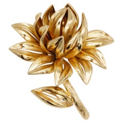 MONET signed vintage gold tone rhinestone flower designer brooch