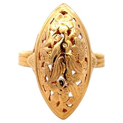Antique German Ring Diamonds solid 18K Yellow Gold Platinum Ø US7.5 / 1.8gr