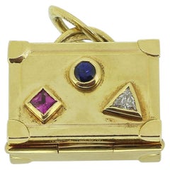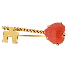 Vintage gold tone heart lock key star red resin dangle charms designer brooch