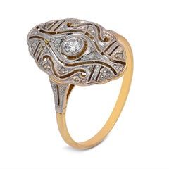 Old cluster ring ,fine example of early XX century design. Combination of Gold, Platinum and Diamonds of Old European cut. Platinum on Gold openwork crown with 6 natural Diamond sto...