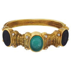 Joan Boyce Gold-Tone Turquoise Enamel and Crystal Inlay Panel Bangle Bracelet