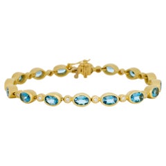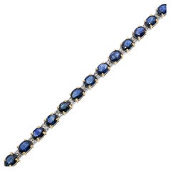 I just love this bracelet. It is just so beautiful. Much nicer than most tennis bracelets, I think. It has 17 oval blue sapphires measuring 5.5 mm x 4 mm set in a beautiful 10k ye...