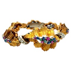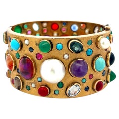 Bochic “Capri” Vintage Amethyst, Multi-Color Sapphire & Multi-Gem Cuff Set in 18K Gold & 950 Silver Length: 7.5 Inches A striking fusion of color, artistry, and Riviera soph...