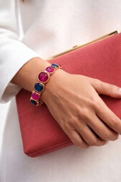Bochic ‘Capri’ Vintage Natural Ruby, Blue Sapphire & Emerald Cuff In 18K Gold & Silver Bochic ‘Capri’ Vintage Ruby, Emerald & Sapphire Cuff — 18K Gold & Silver Nat...