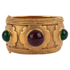 CHANEL Vintage Gold and Blue Stone Cuff Bracelet