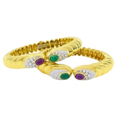 Bochic “Capri” Vintage Ruby & Sapphire Bangle Set In 18K Gold & Silver