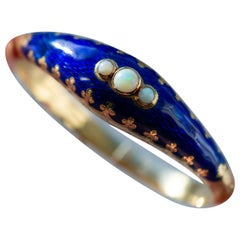 Pair of Victorian Taille d'Epargne Enamel Bangle Cuffs