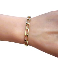 Vintage Gold Bracelet 18ct Gold Stamped Circa 1980s This is a bold yet elegant 18-carat gold bracelet with a distinctly sculptural presence. The bracelet is composed of polished,...
