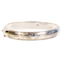 Bijoux Num Hand-engraved Clover Pattern Vermeil Bangle Bracelet