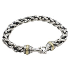 Men's Sterling Silver Woven Wheat Bracelet A wide, woven wheat style bracelet featuring a large lobster claw closure. Designer hallmark "C.S." in gold ...