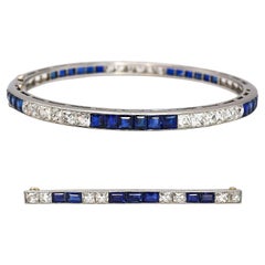ART DECO 1930 Line Bracelet In Platinum With 9.24 Ctw In Diamonds And Sapphires
