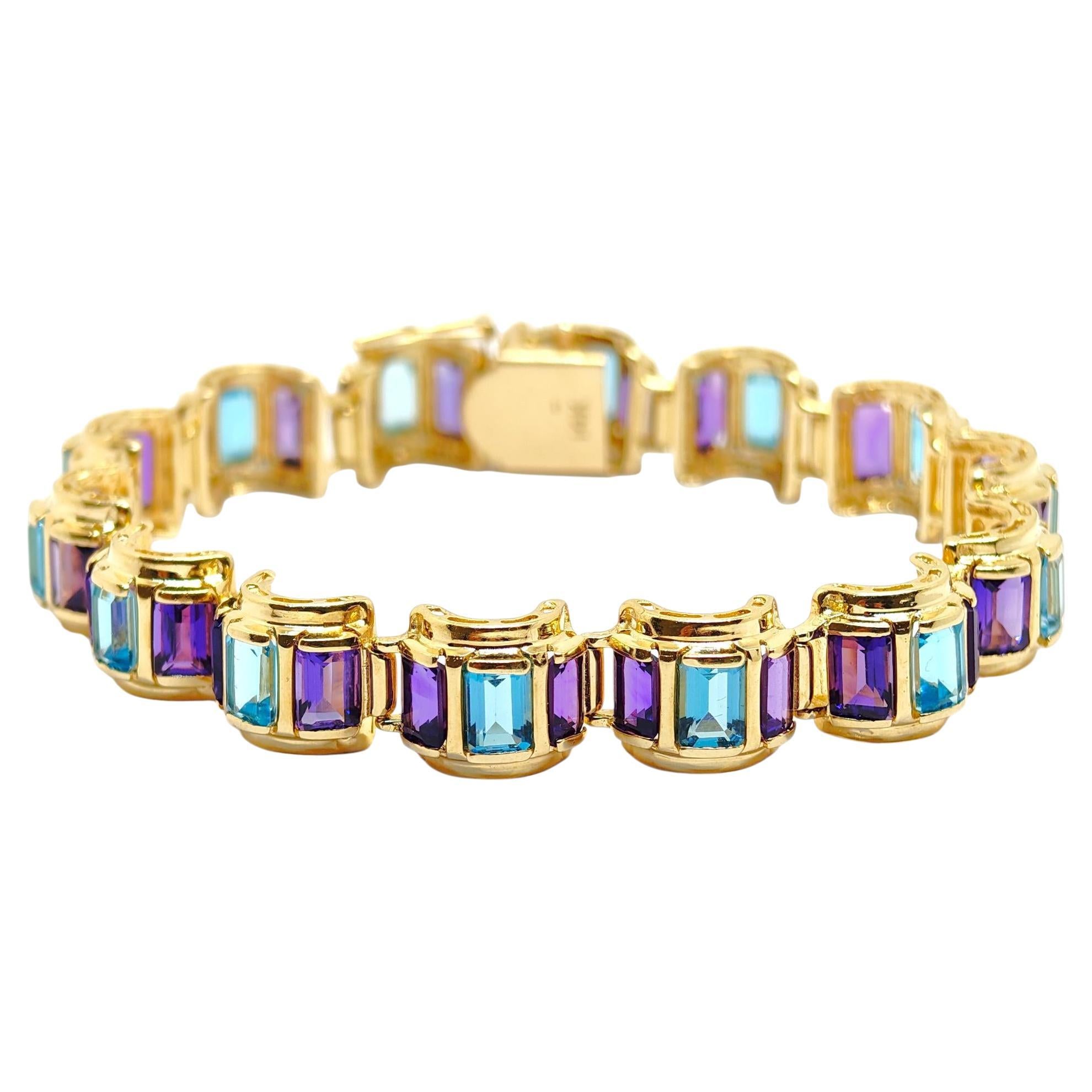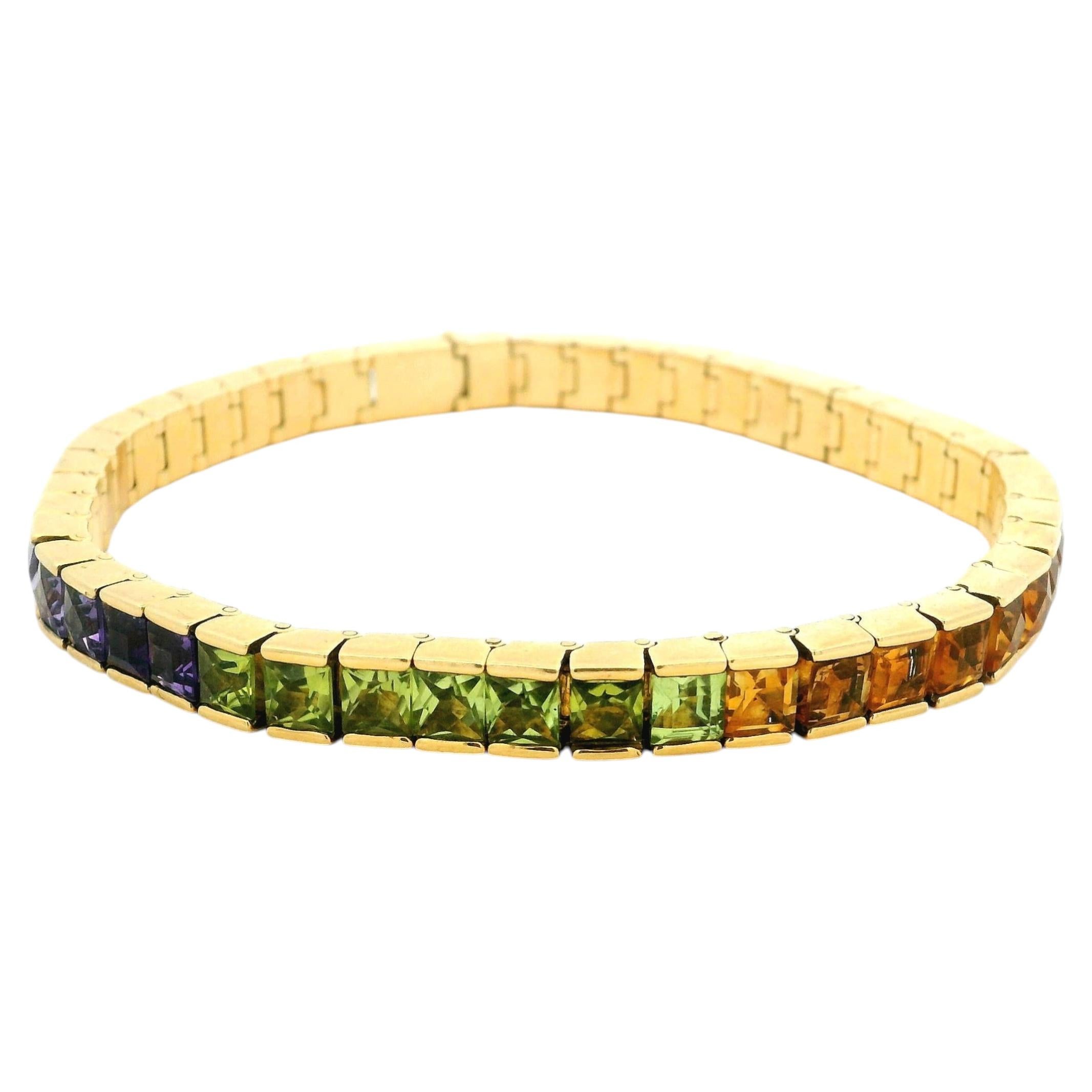 Bochic “Capri” Vintage Multi Sapphire & Multi Gem Bangle Set In 18K Gold & Silver Natural Fancy Sapphire, Citrine, Amethyst, Topaz, Peridot 45.00 Carats 18K Gold & Silver • Signe...