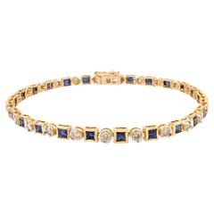 Estate Panther Bracelet in 18K Yellow Gold with Diamonds, Blue Sapphires & Emerald Eyes An exceptional and highly sculptural panther bracelet, masterfully crafted in rich 18K yel...