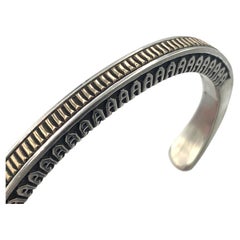Sterling silver overlay cuff by Hopi silversmith Chalmers Day. The cuff features a pictorial overlay design. The inside is 5 3/4" with a 1 1/4" gap for a total length of 7". Sterling Silver is malleable so it has some give.