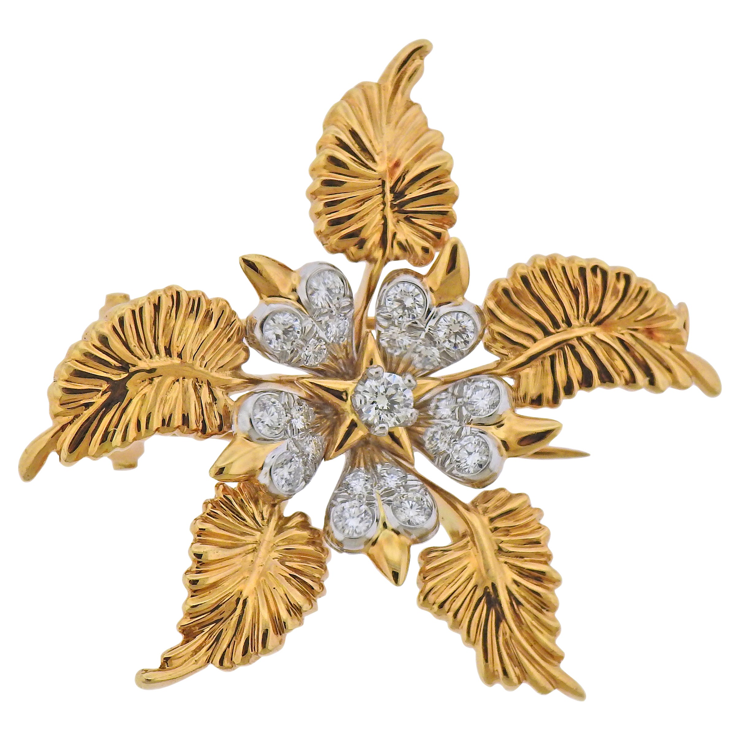 Tiffany & Co. Schlumberger Large Sapphire Diamond Gold Leaves Brooch