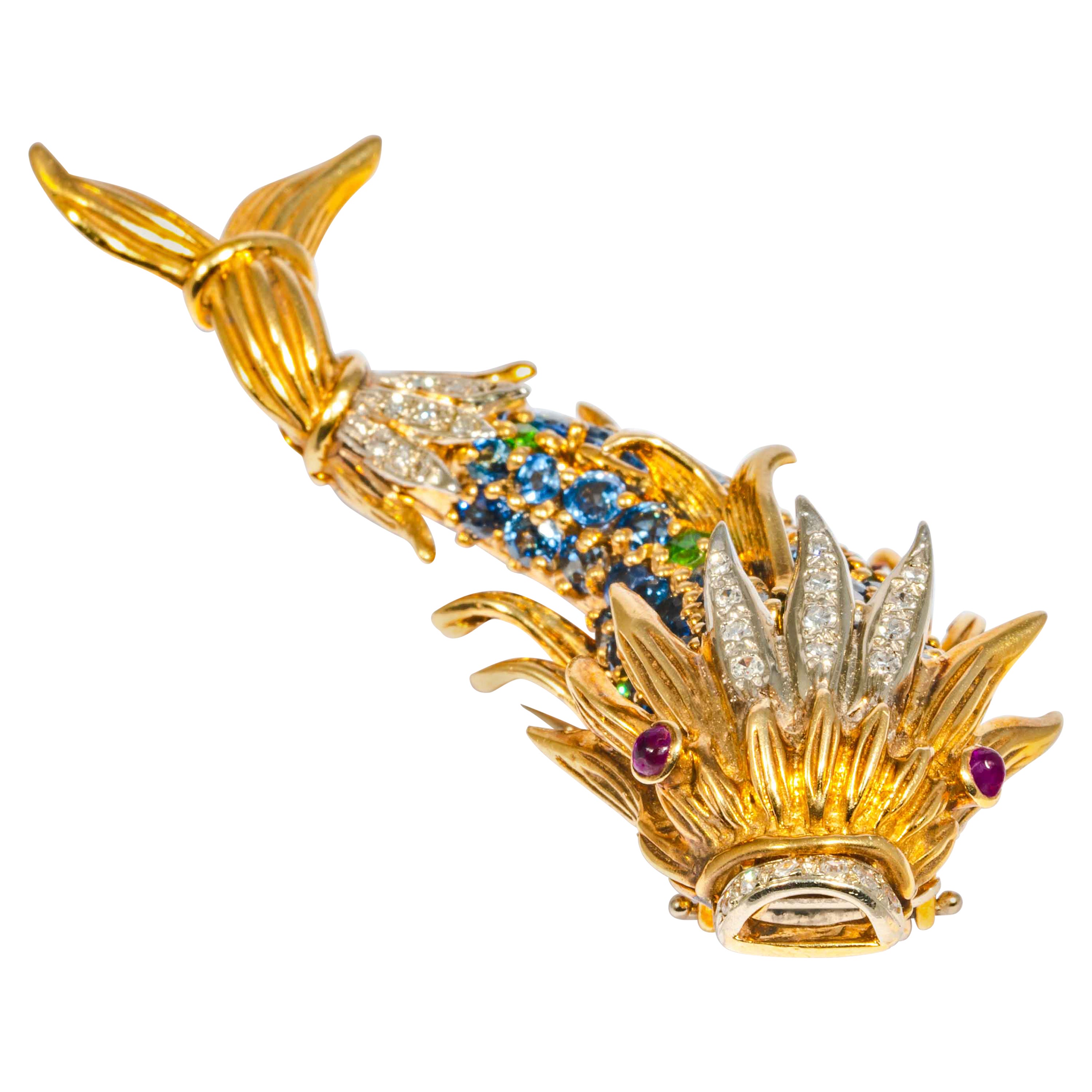 - By Tiffany & Co.Located in Chicago, ILCirca 1970s Tiffany & Company 18K yellow Gold Fish brooch, Having Bright Guilloche Enamel, textured Fins and...Category