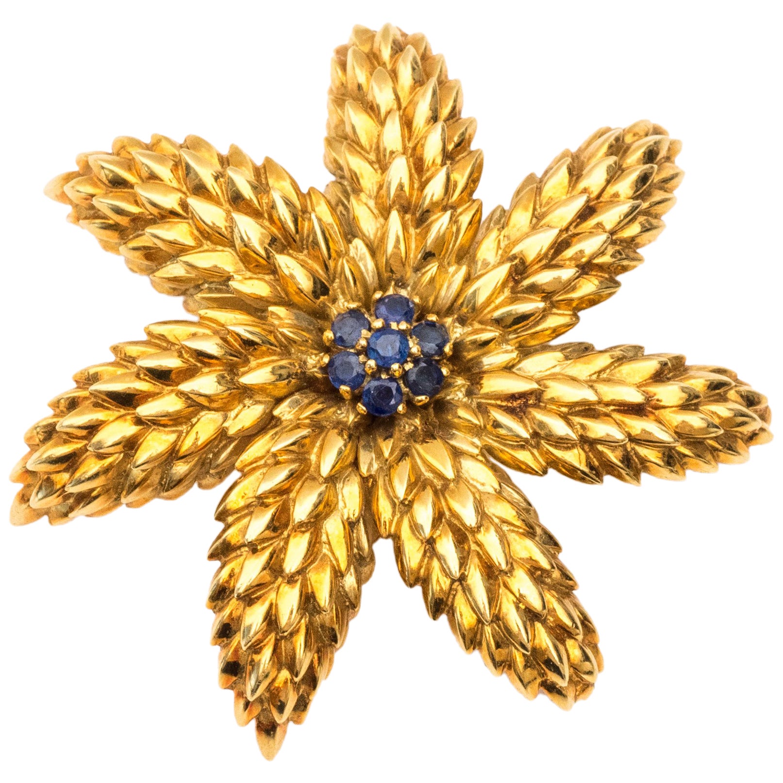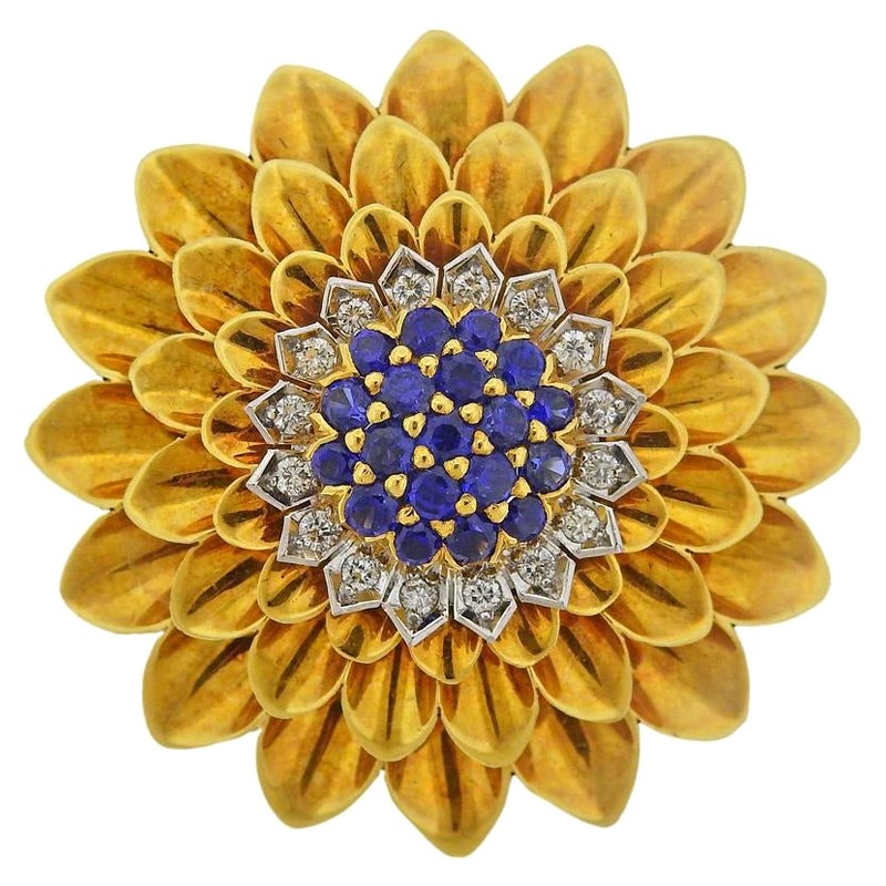 Tiffany & Co. Schlumberger Large Sapphire Diamond Gold Leaves BroochItem Status: