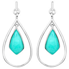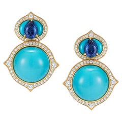 14K Yellow Gold Diamond & Natural Turquoise Door Knocker Earrings 0.58 CTW
