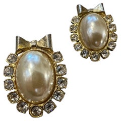 DETAILS • unsigned • gold tone with faux pearls and rhinestones • vintage designer earrings MEASUREMENTS • CONDITION • very good vintage condition with minimal signs of wear...