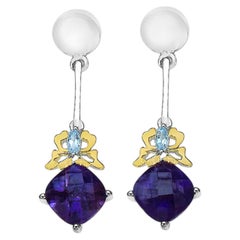 New 1.54 Carat Blue Sapphire & Gold and Blue Enamel Gold PL Sterling Earrings