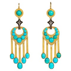Luxurious 18K Solid Yellow Gold Diamond Accent Sleeping Beauty Earrings. Light, slyly jumping, elegant, and a small diamond shining towards the sun. Timeless! All metal is 18K Solid...