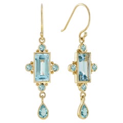 Blue Topaz Oval Shape Genuine Turquoise Round Drops 14k Solid Yellow Gold