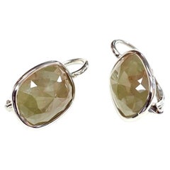 Antique Georgian Rose Cut Diamond Earrings in Silver-Topped 14k Gold, Dutch