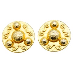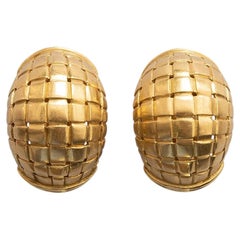 Vintage gold tone shiny textured modernist 80's designer clip on earrings